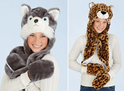 Simple knit hats are so last century. Now you can be hip and modern by donning a winter hat that makes you look like a tiger or bear. As an added perk, these hats even come with attached gloves! <a href="They cost just $9.99 at Collections Etc. Make sure to use this promocode to get half off shipping.